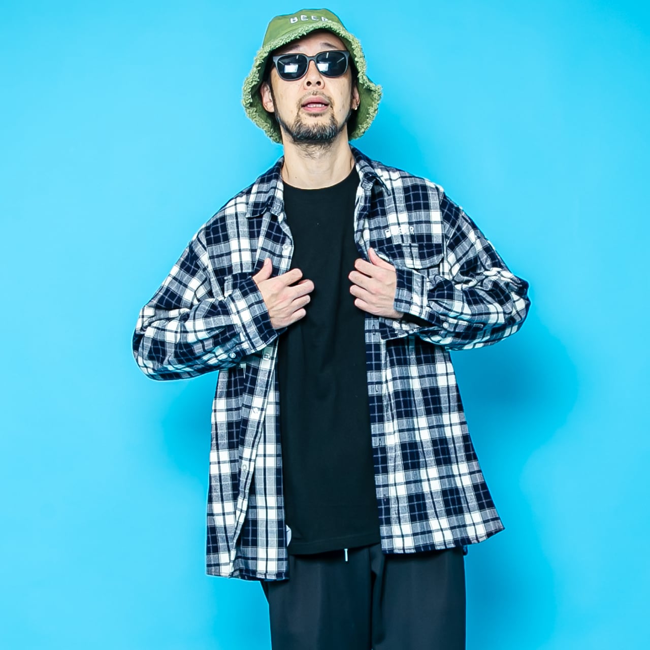 しっかりボタンを締めて、オーバーサイズのカジュアルなシャツとして。