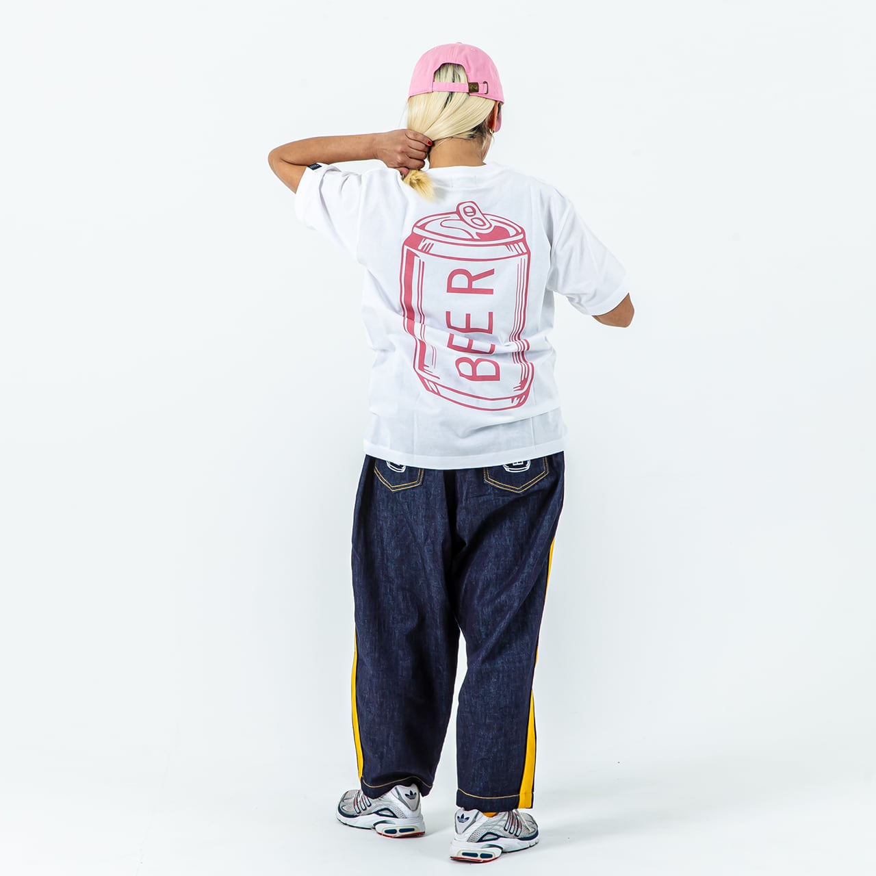 BEER 缶ロゴポケットT ピンク