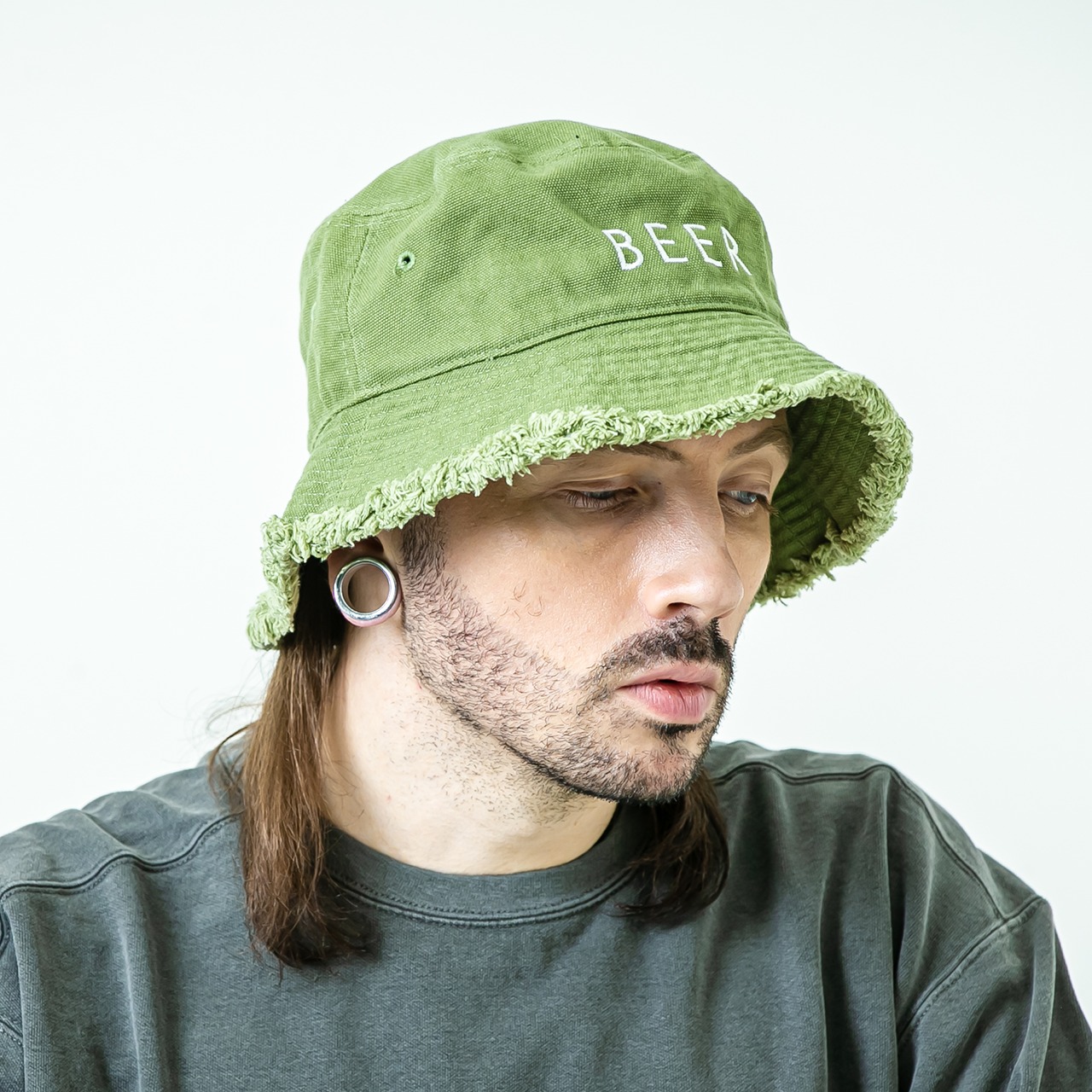 BEER ロゴ刺繍バケットハット/フリンジ (2色)