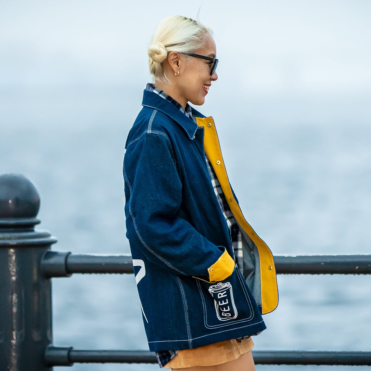 フロントの合わせ部分と袖の裏地にビールカラーを施したこだわりの一品。