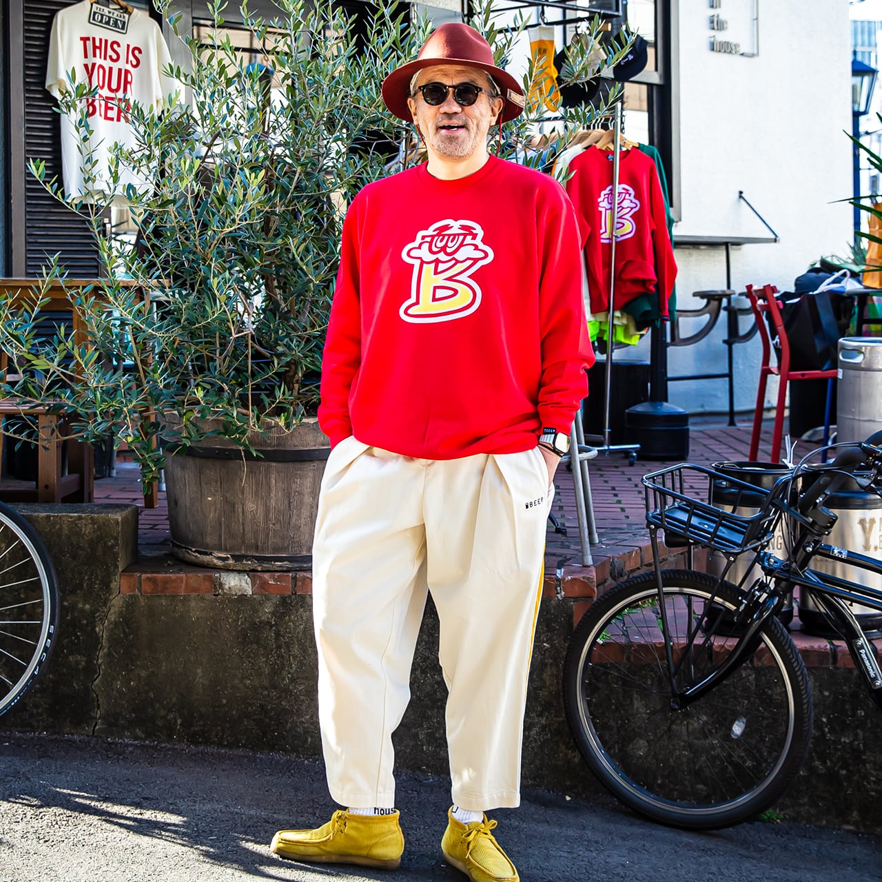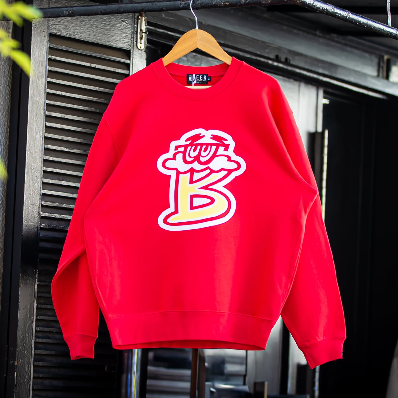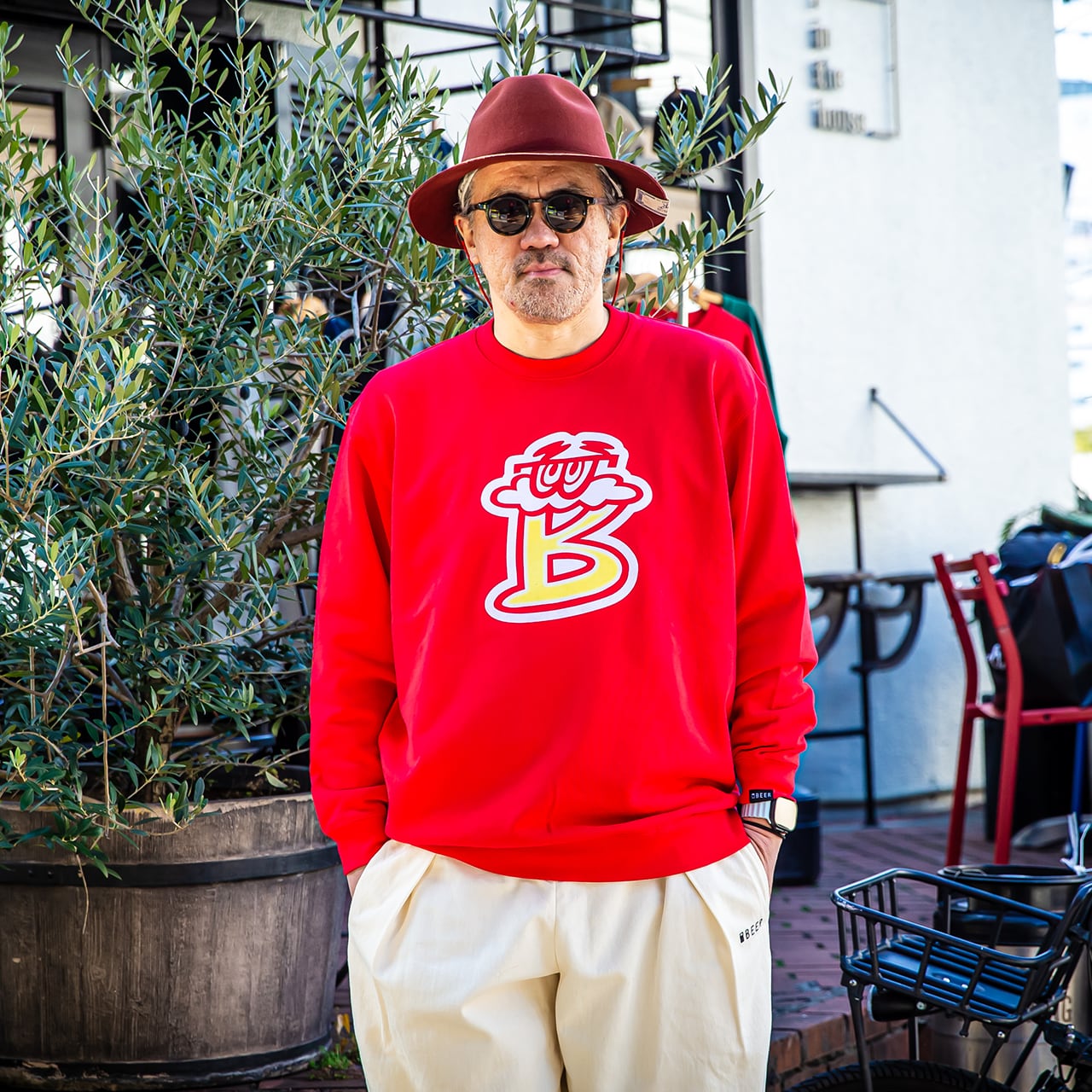 前面のフロッキープリントが特徴の10.0ozのクルーネック・スウェット。
