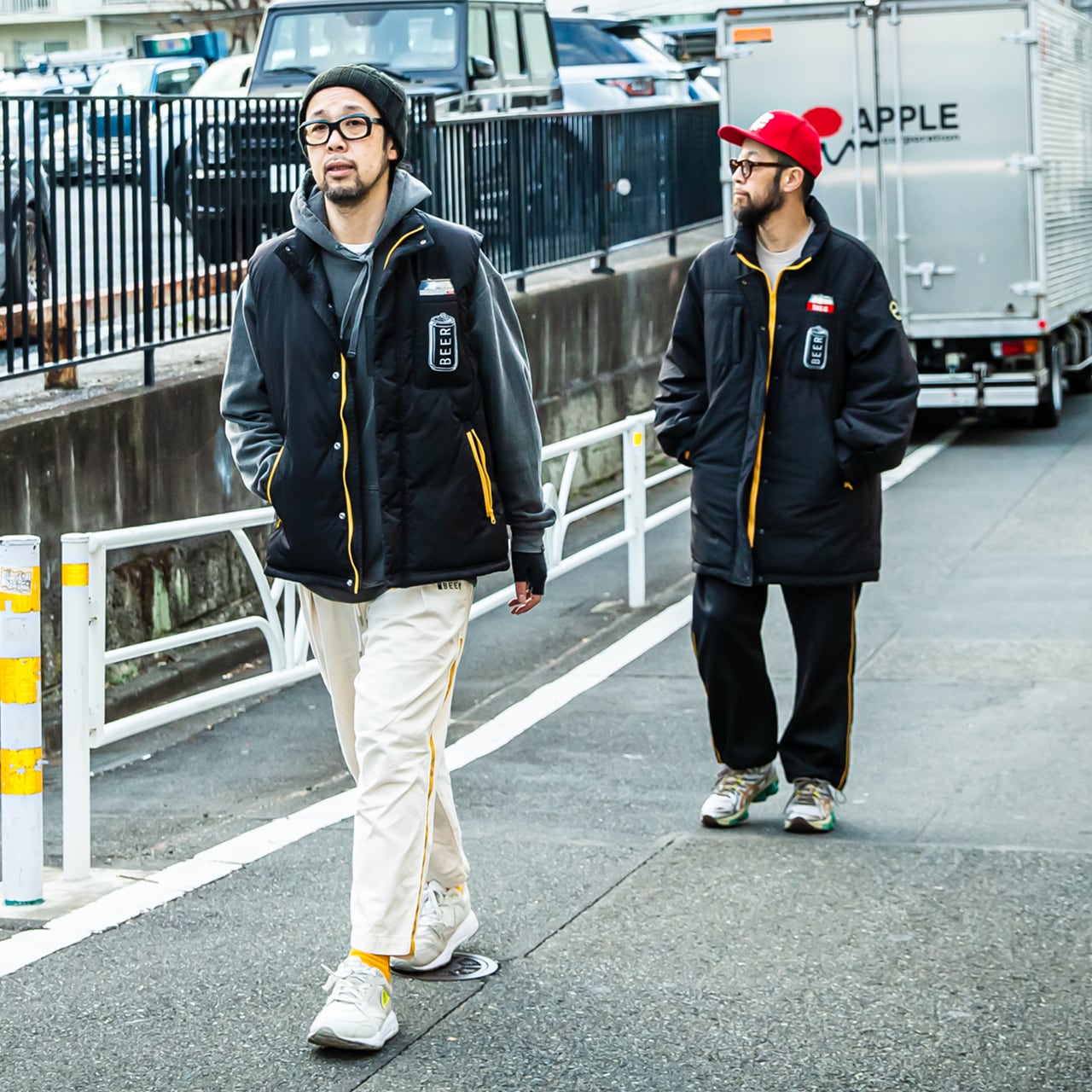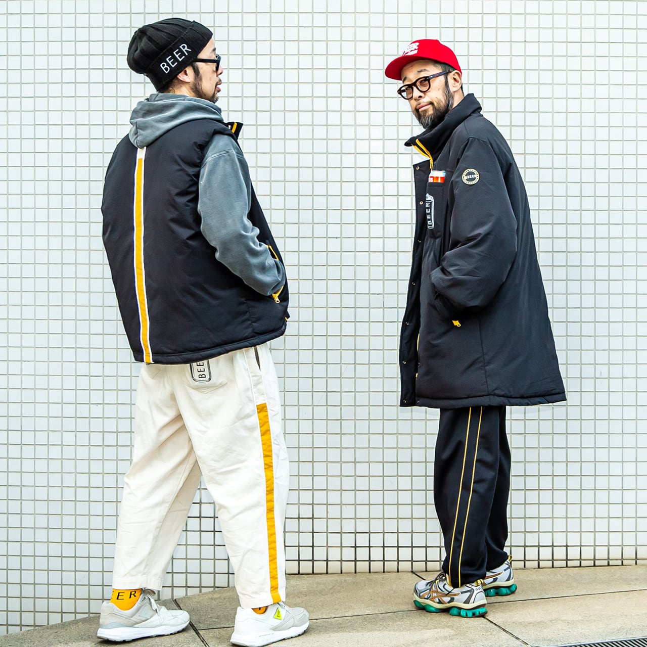 ジッパーやポケット口、そして背面のパイピングにビールカラーのホワイトとイエローを配置し、ビール愛を主張。