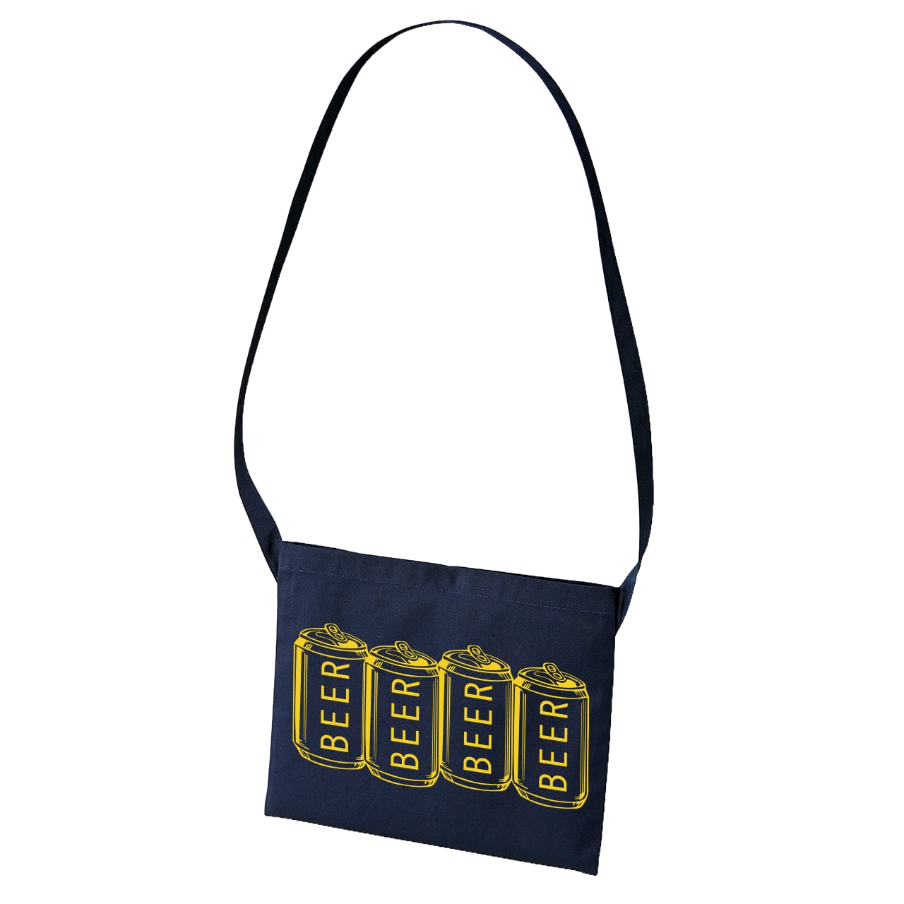 BEER×BREXのコラボロゴと缶ビールイラストがプリントされたキャンバスサコッシュ。