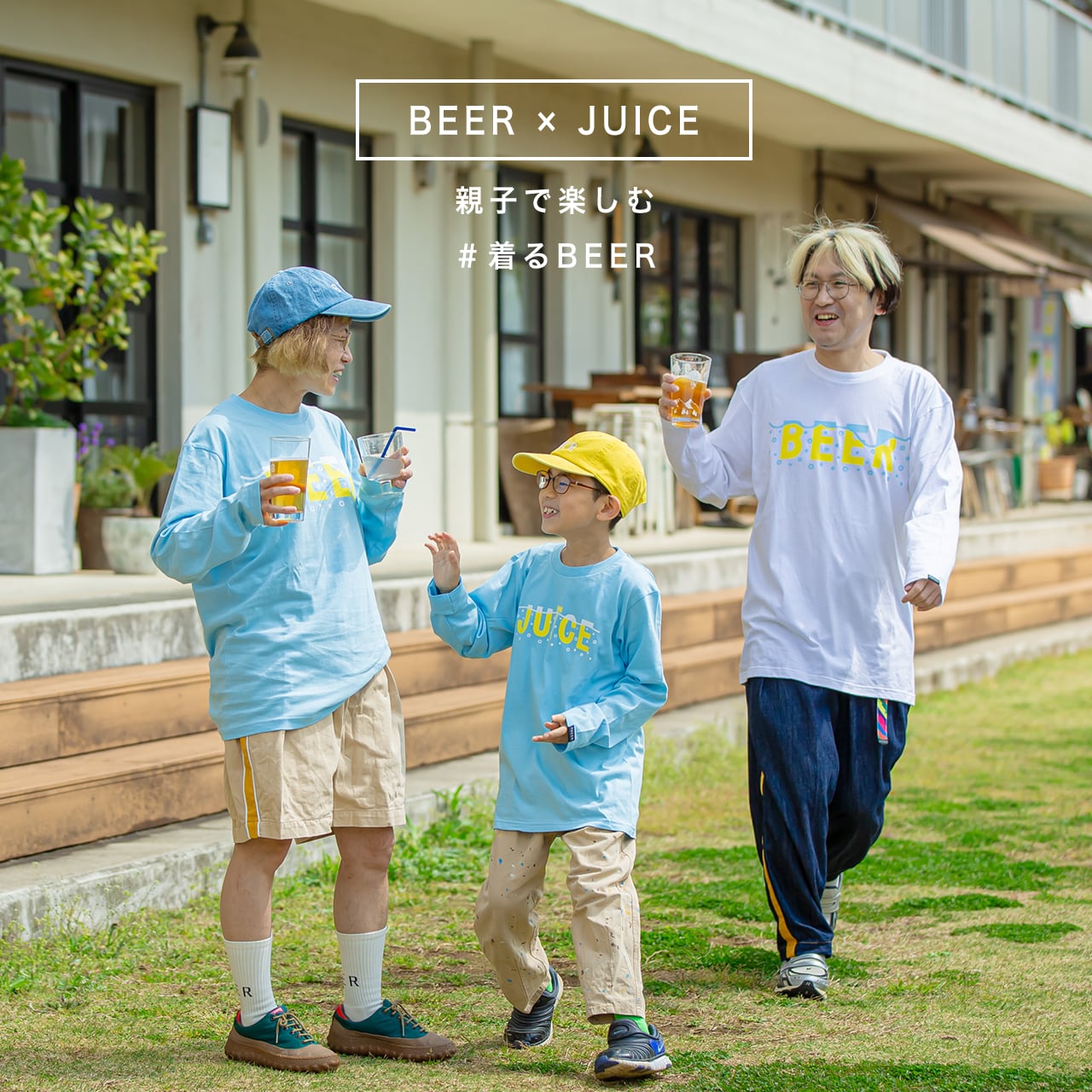 大人はビールで、子供はジュースで、一緒に乾杯!!