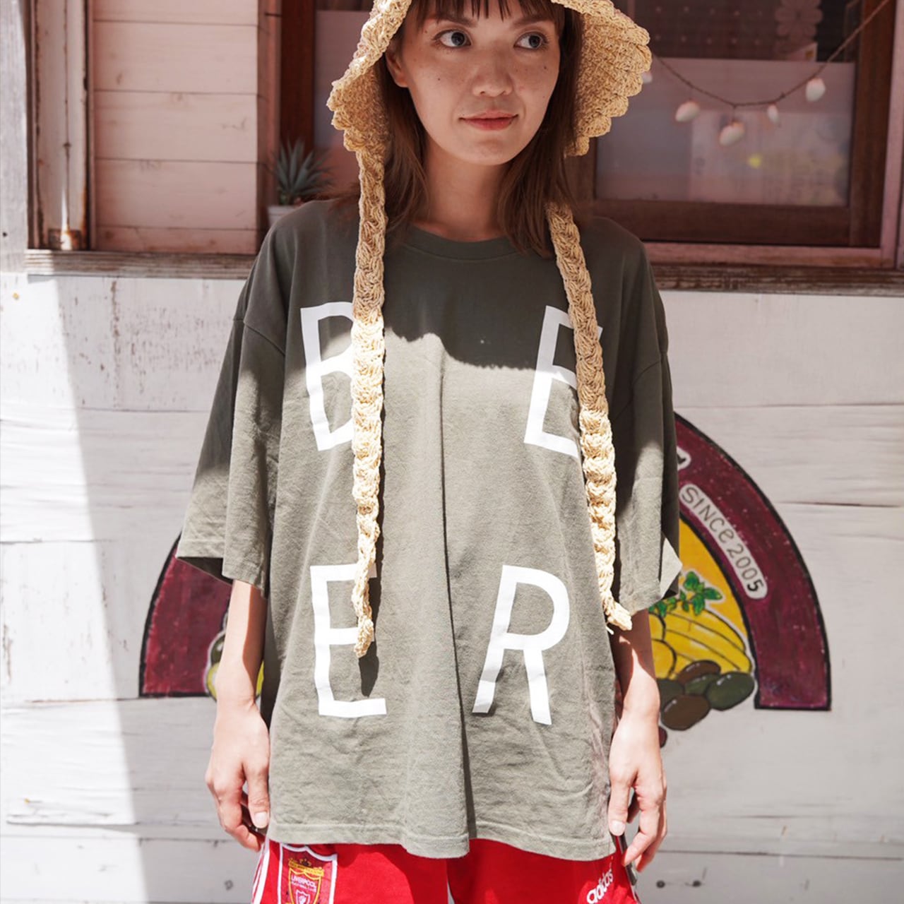 オープンエンド素材&重厚ボディに改行したBEERを前面にプリント。