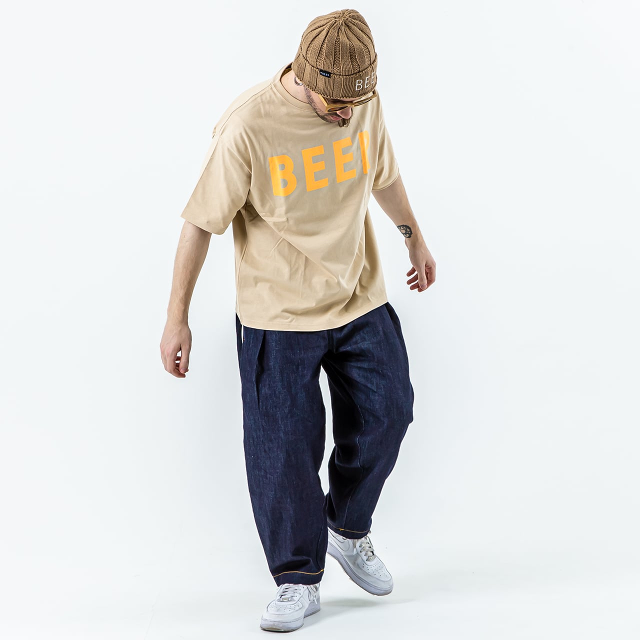 BEER 蛍光ロゴT ベージュ