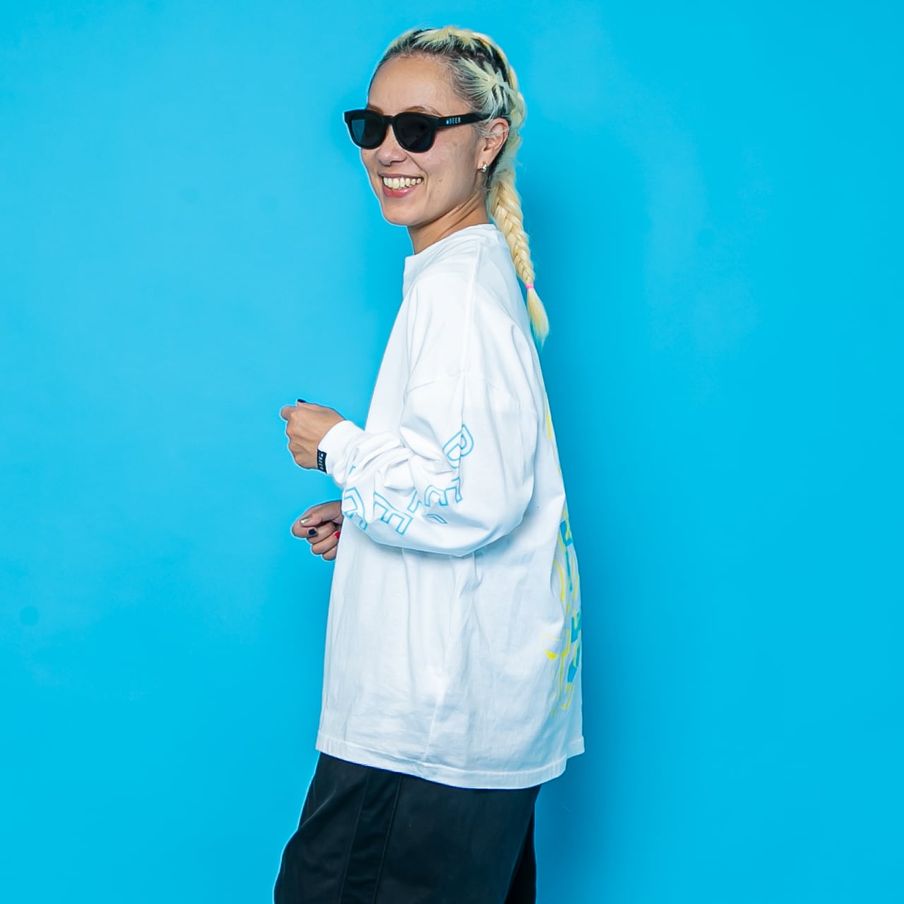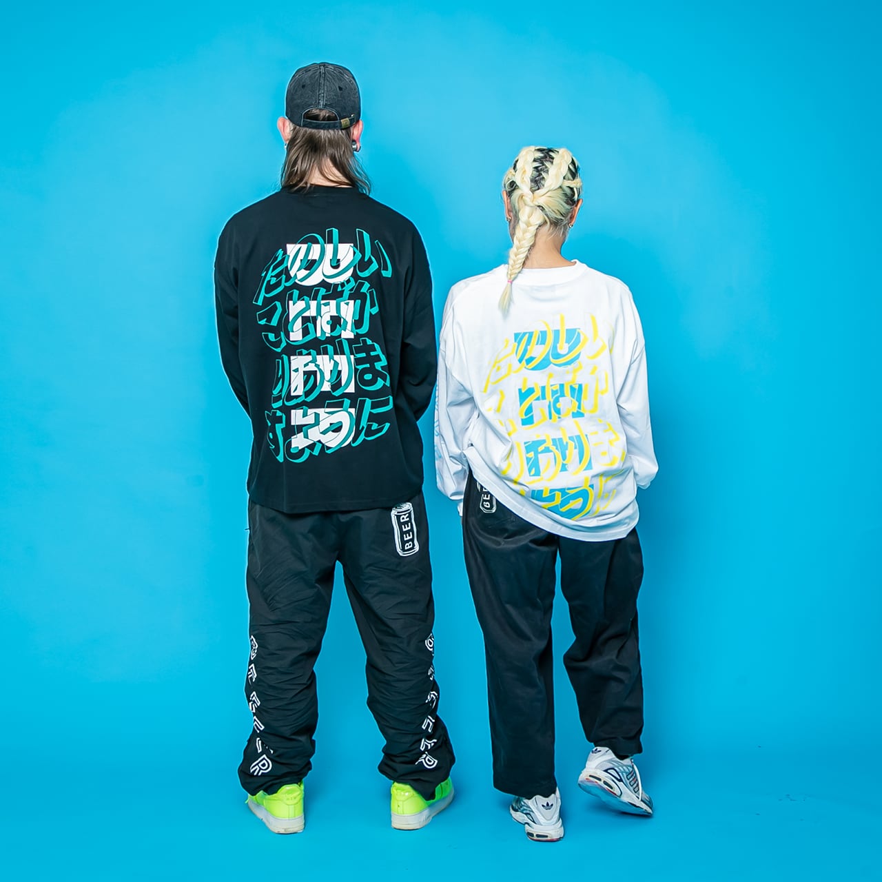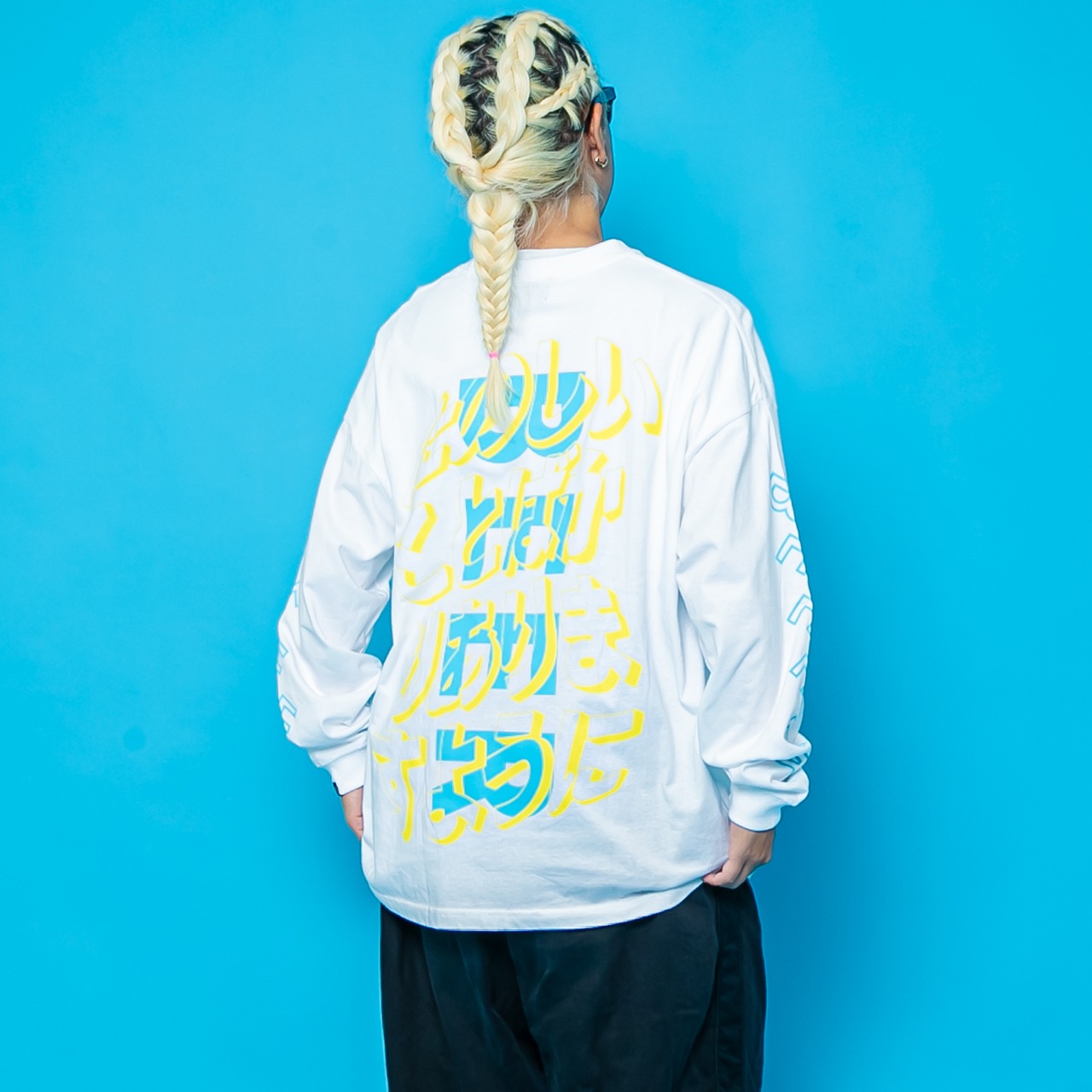 レギュラーラジオの番組タイトルでもある「たのしいことばかりありますように」の文字が大きくプリントされたロンT。