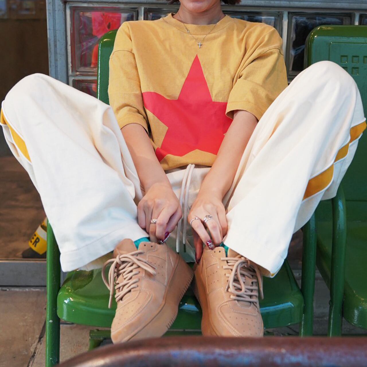 ウエスト位置の高さを変えたり、裾を捲ったり、多様な着こなしも楽しめます。